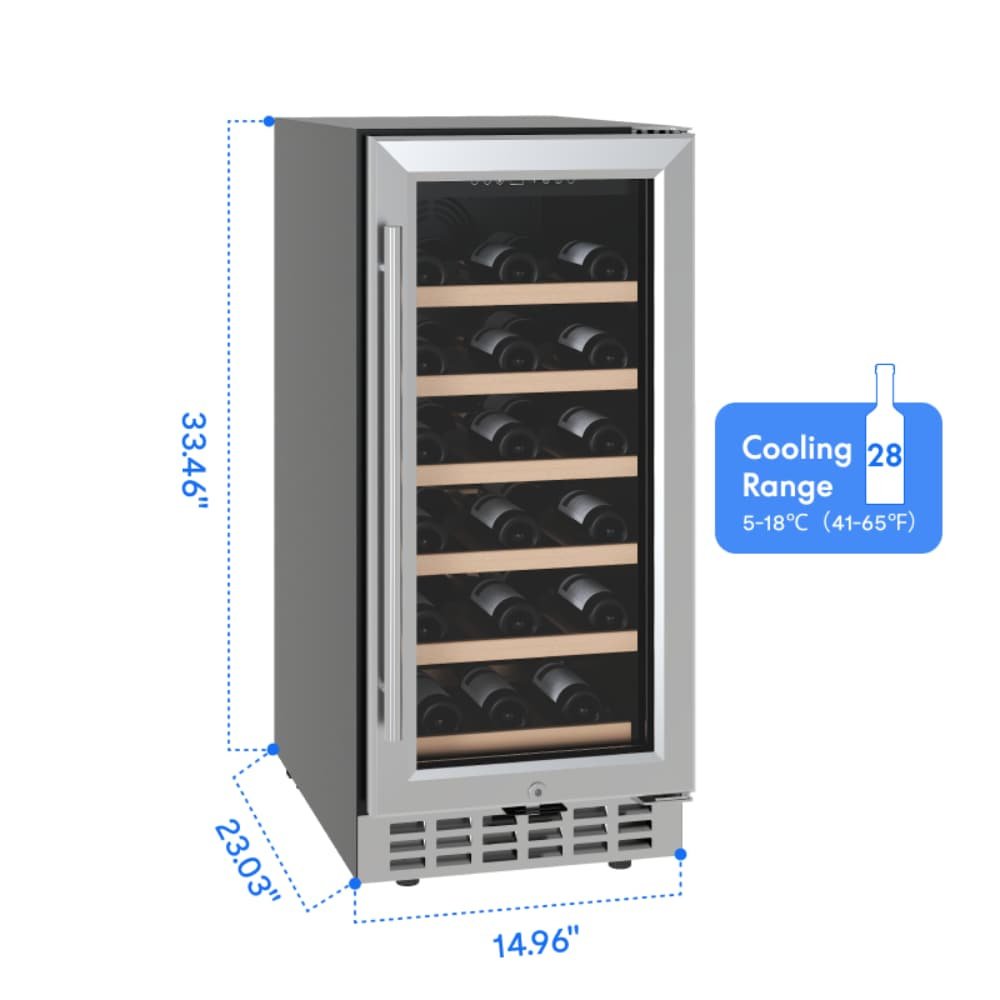 15in Wine Refrigerator Cooler-28 Bottle Capacity