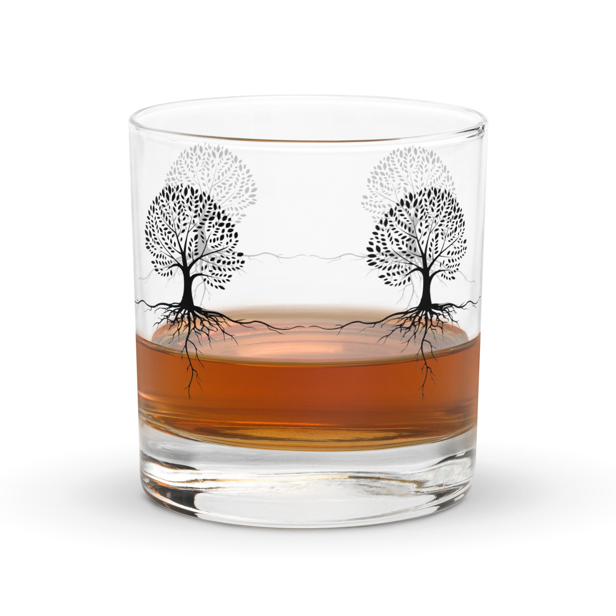 Rooted Elegance Rocks Glass - Tree Design by HadiArts | 10.5 oz Premium Whiskey & Cocktail Barware