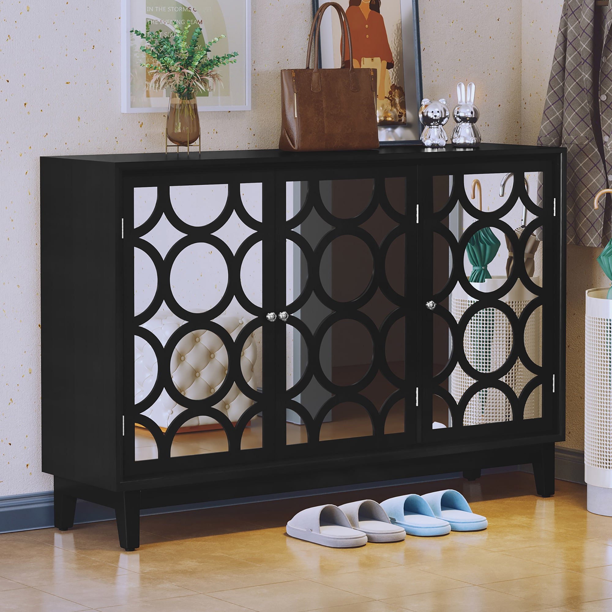 Home > Sideboard Cabinet with 3 Mirror Doors, Modern Buffet Cabinet with Storage, Accent Storage Cabinet for Living Room, Dining Room, Entryway, Black