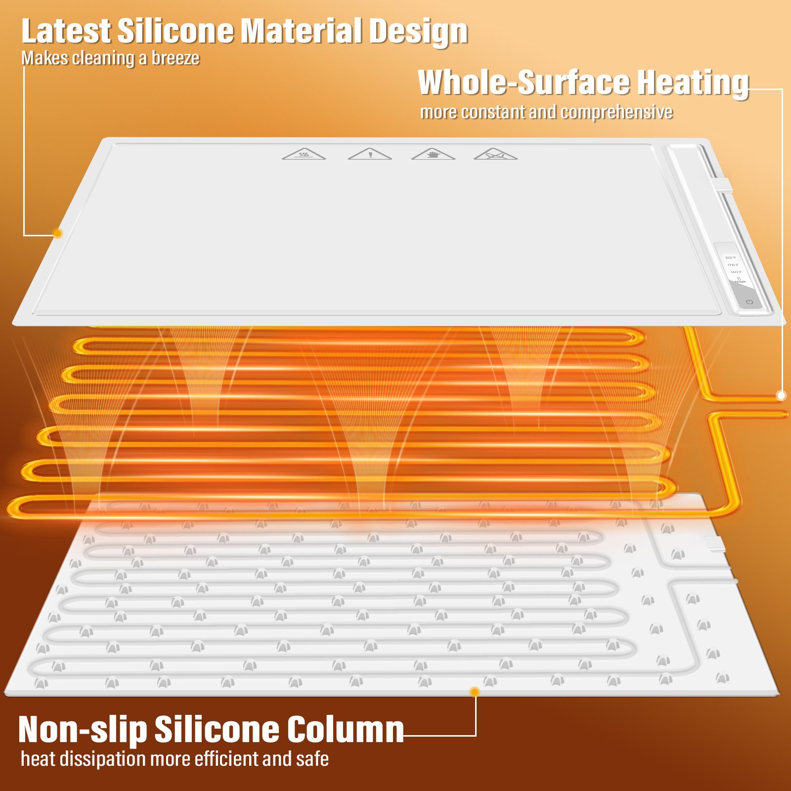 .YEAR-ROUND VERSATILITY: Beyond its role as a food warmer, our product serves as a versatile home assistant. Unlock a multitude of functionalities, from quick defrosting to warming facial masks and aiding in dough fermentation. Elevate your daily routine with a dynamic warming tray that adapts to your diverse needs throughout the year.