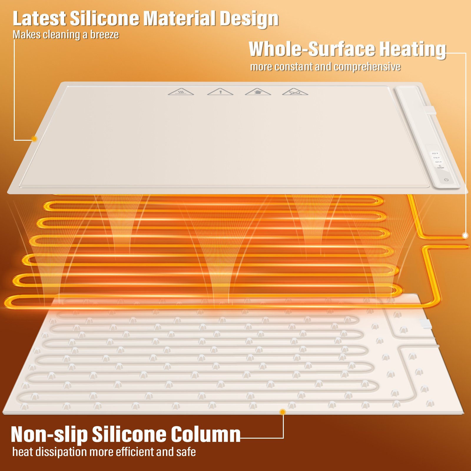 .YEAR-ROUND VERSATILITY: Beyond its role as a food warmer, our product serves as a versatile home assistant. Unlock a multitude of functionalities, from quick defrosting to warming facial masks and aiding in dough fermentation. Elevate your daily routine with a dynamic warming tray that adapts to your diverse needs throughout the year.