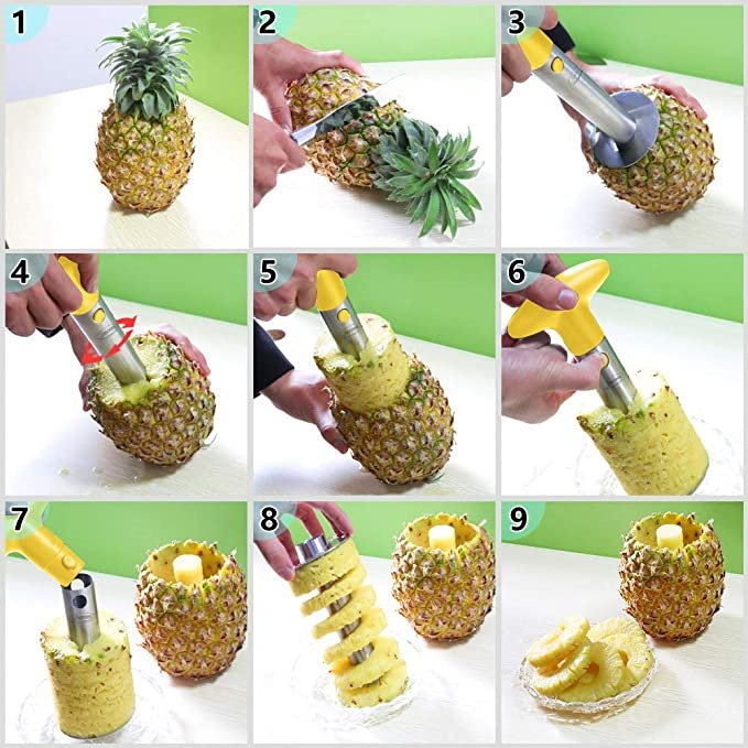 Makes perfectly-shaped rings; preserves shell intact to use as a bowl. Ideal a tools for your pineapple.