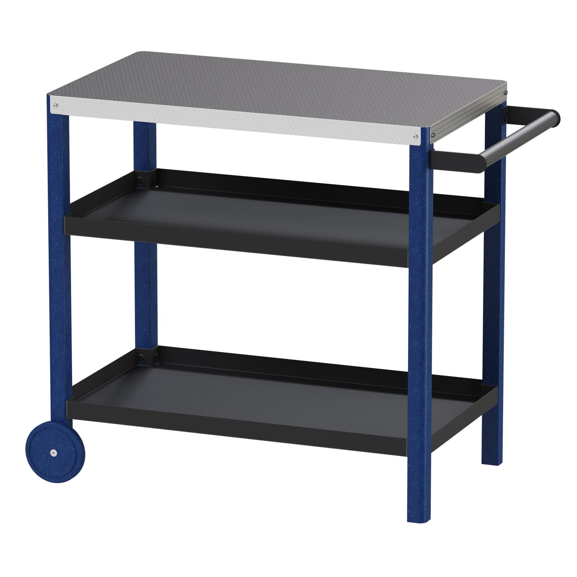 1.[Rust-Proof Stainless Steel Countertop] If you tend to use this outdoor prep table frequently, then choosing a stainless steel countertop is more suitable. One reason is that this stainless steel countertop is easier to clean, and will not deform and discolor. The stainless steel used for the countertop is very thick and high-quality. Stainless steel countertop has a very long service life and is suitable for long-term use.2.[All-weather Resistant Prep Table] Compared with plastic and other outdoor wood dining tables, the stainless steel table top is more durable and withstands rain, wind and sun. Plastic will inevitably deform over time, and wood is prone to mold in humid areas and cracks under direct sunlight. Besides, this prep table has 2 wheels and 2 table legs. Compared with 4 wheels, it is more stable and not easy to shake, so it is suitable for use in all regions and any weather.3.[HDPE Material] It is suitable for use in any weather and any area, and will not be deformed, discolored or shortened in life due to being placed outdoors. Even if you live in a very humid place, this all-weather removable prep table won't get moldy or rot. If you put it in the sun, its HDPE frame will not be discolored or damaged. If the place where you are is very windy, this preparation table will not be blown over in strong winds or tipped over like some lightweight plastic tables.4.[Outdoor Pizza Oven Grill Table Prep Cart ]You can roll it across your yard to the BBQ area .This is not a super lightweight plastic prep table. It has stainless steel top with HDPE frame. The prep cart is around 34 pounds. You can use it for portable barbecue grill or put your pizza oven on it. It's very easy to roll by slightly tilting it with the attached handle and moving it to wherever you like. The table cart still has a practical size for moving around or getting through any doorway.5.[ Heavy-Duty Two-Shelf Outdoor Prep Cart ] This cart is weighing about 34 pounds. It's fair to say the table is heavy, but not so heavy that it's hard to move freely The size and weight of this table are convenient for everyday use, no matter where you are moving it through any door. Due to the weight, you don't have to worry about tipping over when you use it outdoors.It provides additional shelf storage space for your outdoor use, which is very practical.6.[Detailed Instructions for the Assembly] We have instructions for the assembly. The instructions are very brief, consisting of a series of well-marked diagrams. The numbers is for packaged screws, bolts, etc. Alphabet are showing you what part it is in the order to install.Once correctly assembled, you will have an extremely sturdy unit that fully fits for long term outdoor duty.7.[Utility Outdoor Cart and Low Maintenance] You can put pizza oven, portable grill, deep fryer on the countertop. They will rests securely on the top surface of this cart. The cart table top is made out of stainless steel so it will sustain all the food preparation and knife cutting. The table weight distribution is well balanced, so it will not tip over when you use it. The stainless steel top means durability, utility and little maintenance.