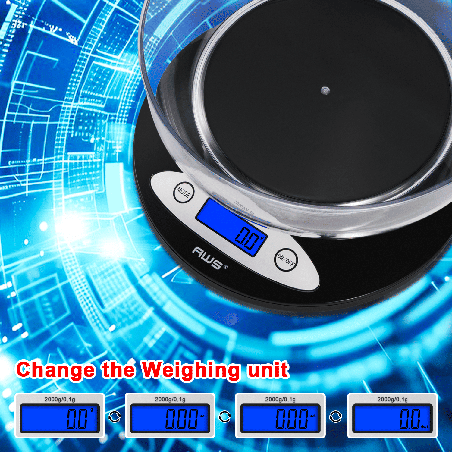 The 2K-BOWL features a versatile weighing bowl and high precision for a variety of weighing tasks. The backlit LCD display helps make the numbers viewable and easy to read. This scale offers diversity with functionality. Use the bowl to weigh your ingredients or remove the bowl and place your items directly on the weighing surface. Need more surface? Take it one more step further. Using the tare feature will give you that extra control to use a larger flat surface for additional weighing surface. Clean up is easy and a snap; the sturdy and durable bowl is dishwasher safe. Want grams or pounds? Change modes with the press of a button.