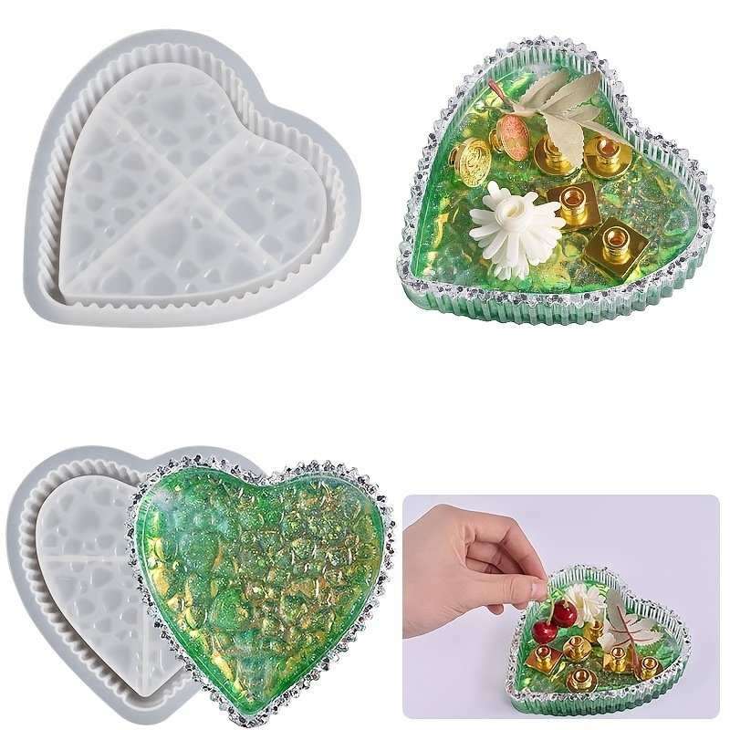 1pc Heart-shaped Striped Dewdrop Tray Saucer Love Water Pattern Storage Box Silicone Mold