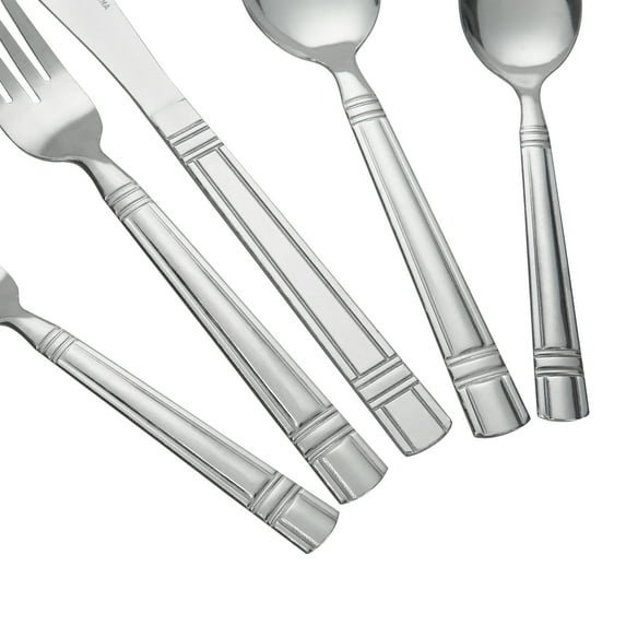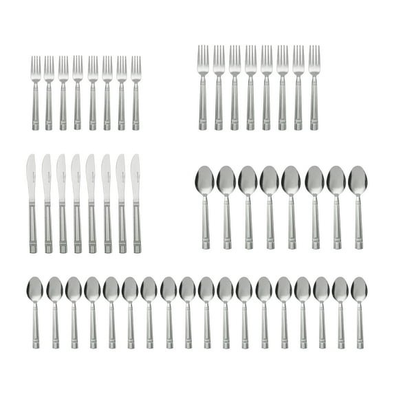 Crafted from durable stainless steel, this 48-piece utensil set includes everything you need for daily dining or entertaining: 8 dinner forks, 8 salad forks, 8 dinner knives, 8 dinner spoons, and 16 teaspoons. The flatware features gorgeous handles with clean lines for a polished, versatile look that works with both casual and formal table settings.