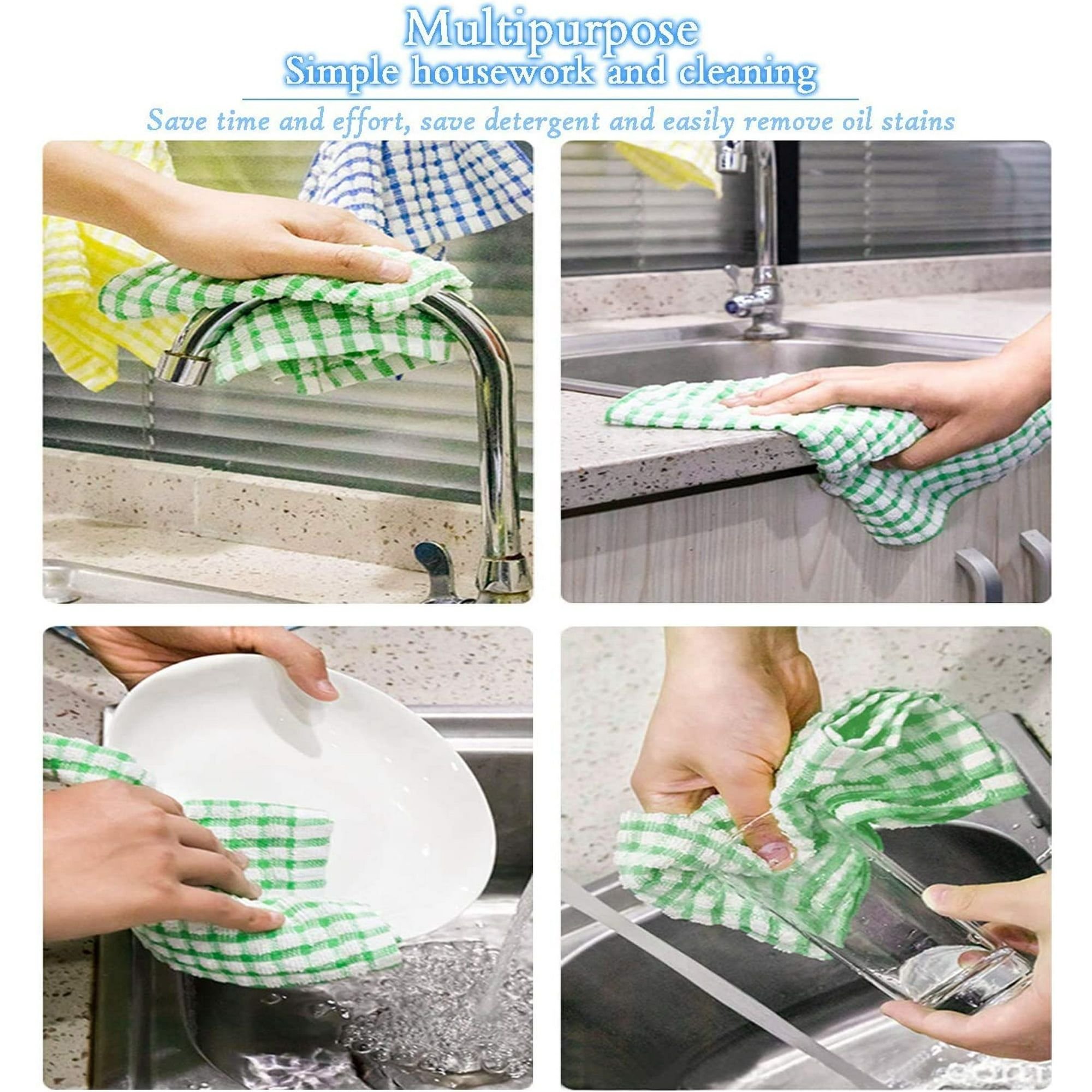 Tackle any kitchen task with this 6-pack of ultra-absorbent cotton dish towels. Measuring 16 by 25 inches each, these towels feature a Dobby weave that provides superior absorbency and faster drying times. Strong yet soft, they’re tough enough for heavy-duty cleaning while remaining gentle on dishes, silverware, and cookware. Each set includes six vibrant gingham colors—Pink, Red, Green, Navy, Blue, and Brown—to match any kitchen decor. Perfect for drying, washing, or wiping down surfaces, these towels are machine washable, low lint, and built to last.