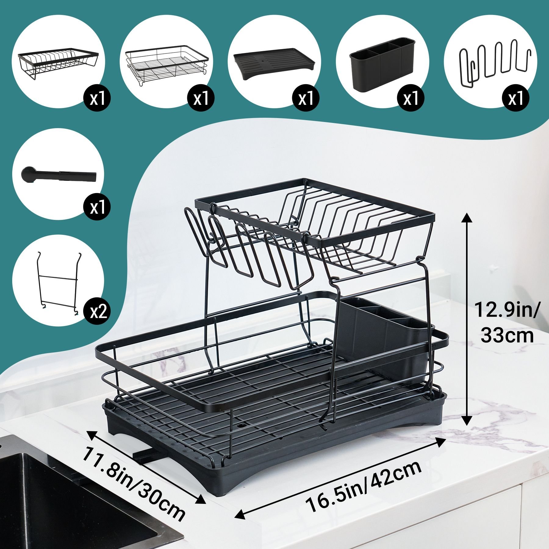 [Rotating spout] This kitchen dish drip rack is equipped with a 360° rotatable water outlet to drain water directly into the sink, no matter where it is placed.