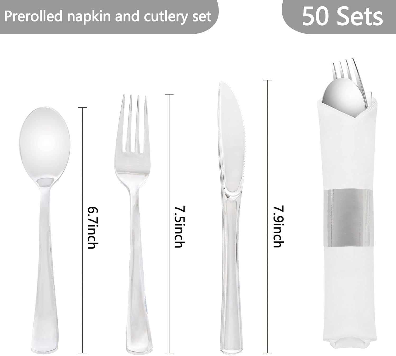 Forks spoons and knives set disposable are the perfect addition to the table and added a very rich look to them.The fancy plastic silverware sets individually wrapped are sturdy enough to be used for everything and the party napkins disposable were thick and high quality