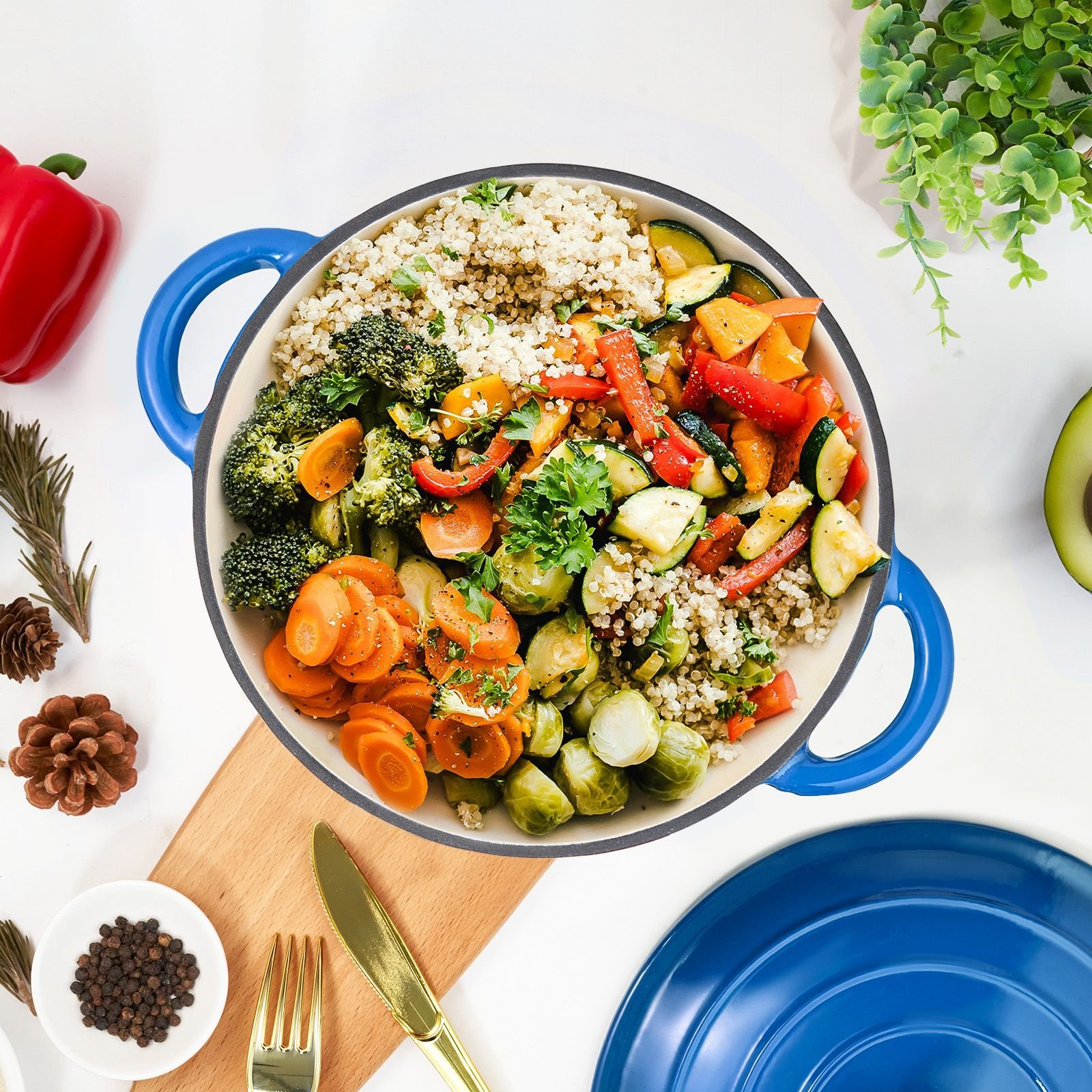 WIDE USAGE SCENARIO:This enameled cast iron dutch oven is suitable for a variety of cooking scenarios including gas, electric, ceramic and induction stoves.The natural insulation of the cast iron pan combined with the enamel surface meet your multiple cooking styles and needs. SINCERE AFTER-SALE:We insist on the principle of the supremacy of customers, to create the most sincere service for you.Dear customers, we promise to provide a one-year warranty, please feel free to contact us if you have any questions about our products.