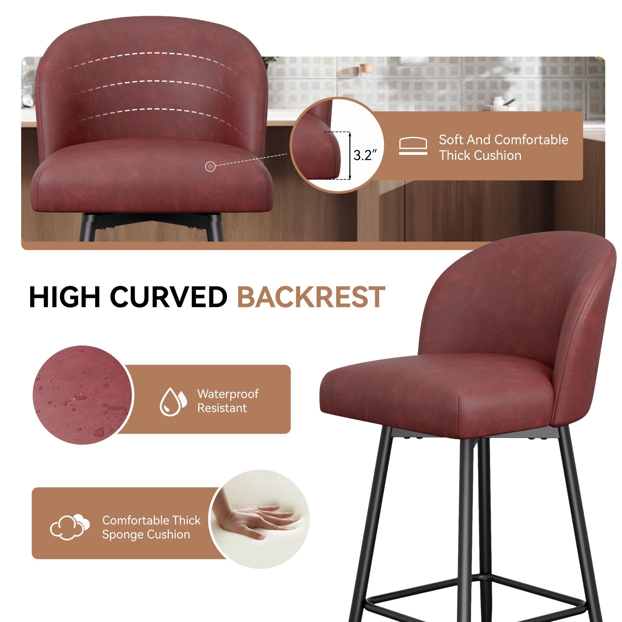 Comfortable Ergonomic Design: Our vintage PU leather bar stools feature high-density foam and an L-shaped curved backrest that conforms to your body's natural curve, ensuring maximum comfort while you enjoy drinks at your kitchen island or dining table